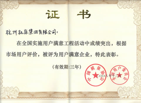 近召開的全國用戶工作會議暨實施用戶滿意工程推進大會上,杭州機床集團有限公司被評為2008年全國實施用戶滿意工程先進單位,此次獲得這項榮譽的有80余家企業(yè),其中機床行業(yè)只有杭機集團一家入選。