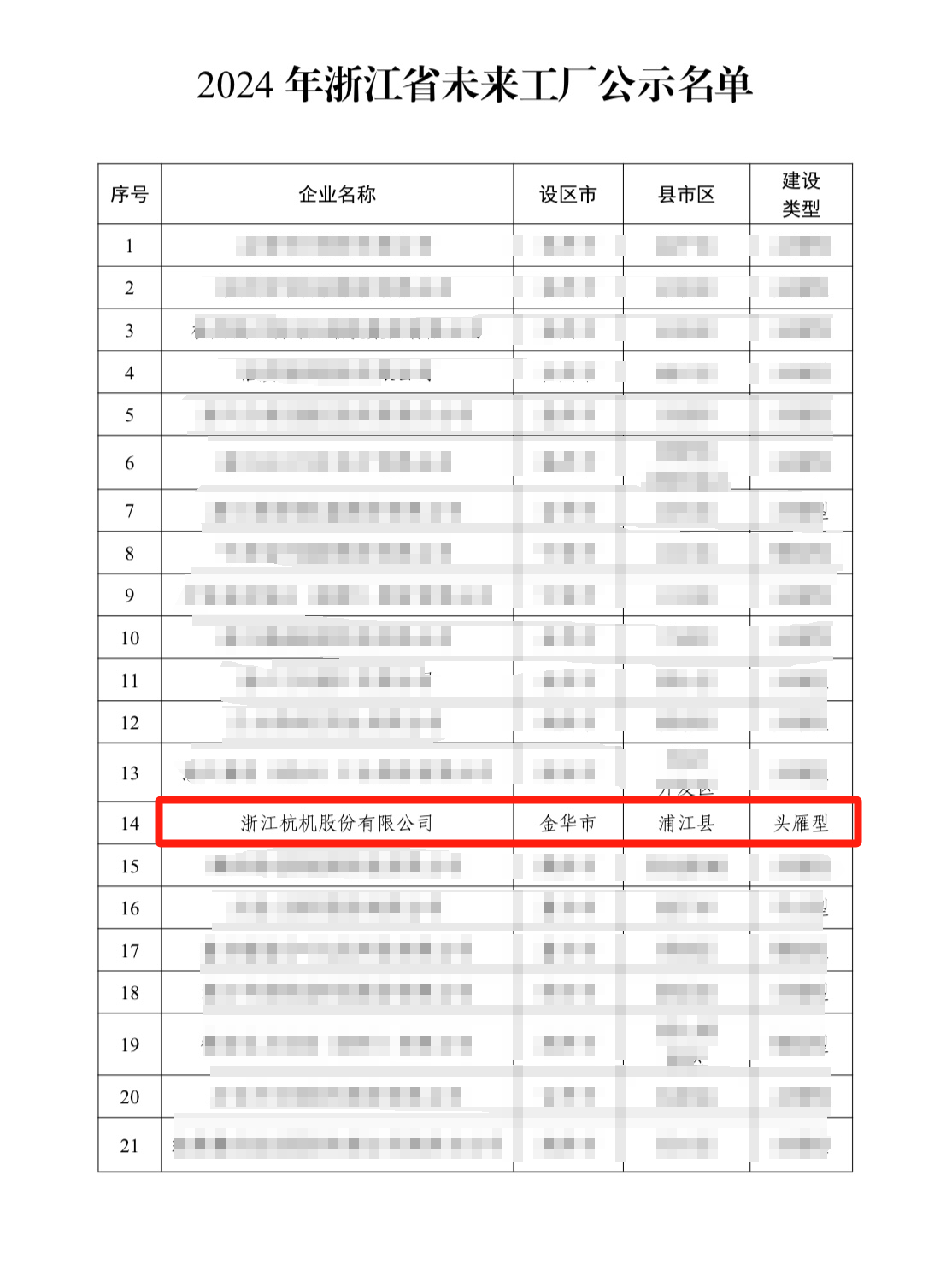全國(guó)僅21家企業(yè)入選2024年浙江省未來工廠,浙江杭機(jī)股份有限公司更是浦江縣首家且唯一入選企業(yè)。