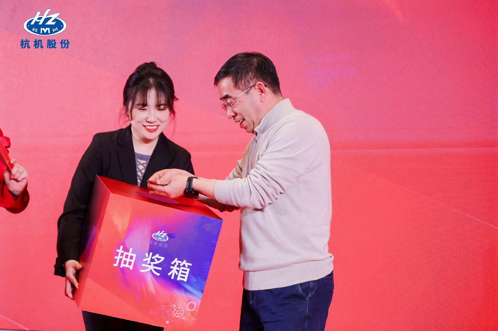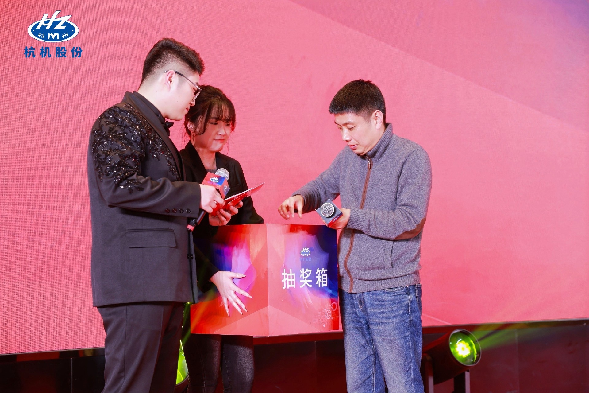 晚宴中杭機股份董事長于立鵬先生致祝酒辭,并攜杭機股份全體董事會成員及經(jīng)營班子共同上臺祝酒。于董首先對過去一年關(guān)心支持杭機發(fā)展的各級政府與全體杭機家人們表示感謝,并強調(diào)杭機一直以來是一個有文化認同,有傳承精神的企業(yè)。展望新的一年,我們將會繼續(xù)發(fā)揚杭機精神,緊緊抓住新的發(fā)展機遇,不斷提升管理水平,加大技術(shù)創(chuàng)新投入,拓展市場渠道,為社會貢獻更多精品、為股東創(chuàng)造更多價值,為員工提供更好的發(fā)展平臺和福利待遇,團結(jié)一心,攜手共進,共同開創(chuàng)杭機更加美好的明天!牢筑發(fā)展基石,踏上新的征程,向新而行,向上而行!
