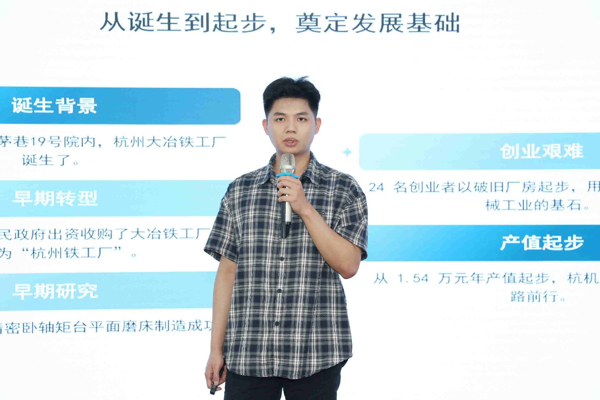 從1921到2025,杭機(jī)用百年堅(jiān)守鑄就中國制造豐碑,每一臺(tái)機(jī)床訴說著工匠精神,每一枚齒輪鐫刻著時(shí)代印記,現(xiàn)場杭機(jī)股份總經(jīng)理金正鋼率先登臺(tái)作特邀演講。他回顧企業(yè)從民族工業(yè)脊梁到高端裝備領(lǐng)軍者的蛻變歷程,強(qiáng)調(diào)“守正創(chuàng)新是杭機(jī)百年不衰的密碼”,并寄語青年職工:“既要讓傳統(tǒng)技藝煥發(fā)新生,更要讓創(chuàng)新之火永續(xù)燃燒!”