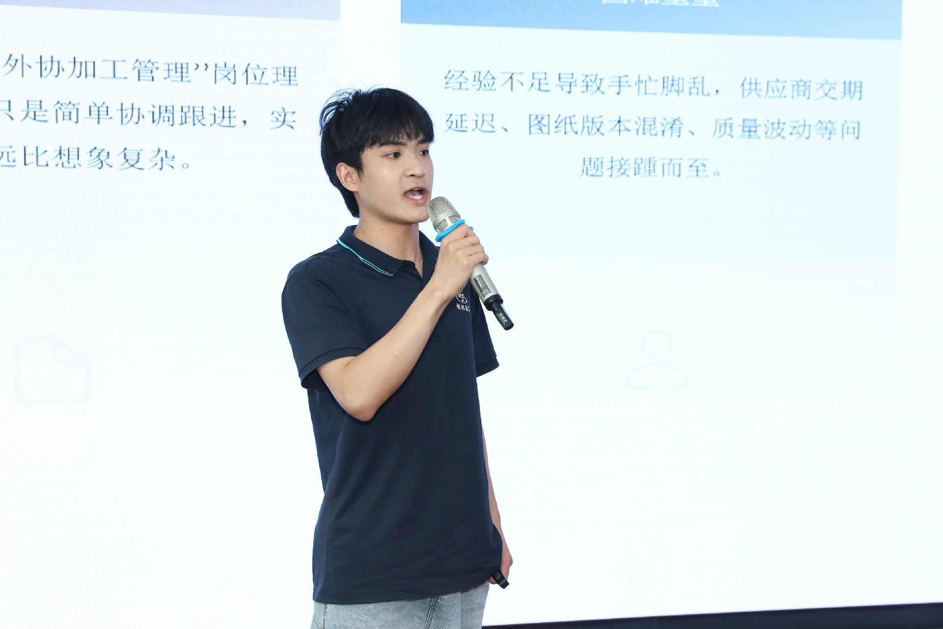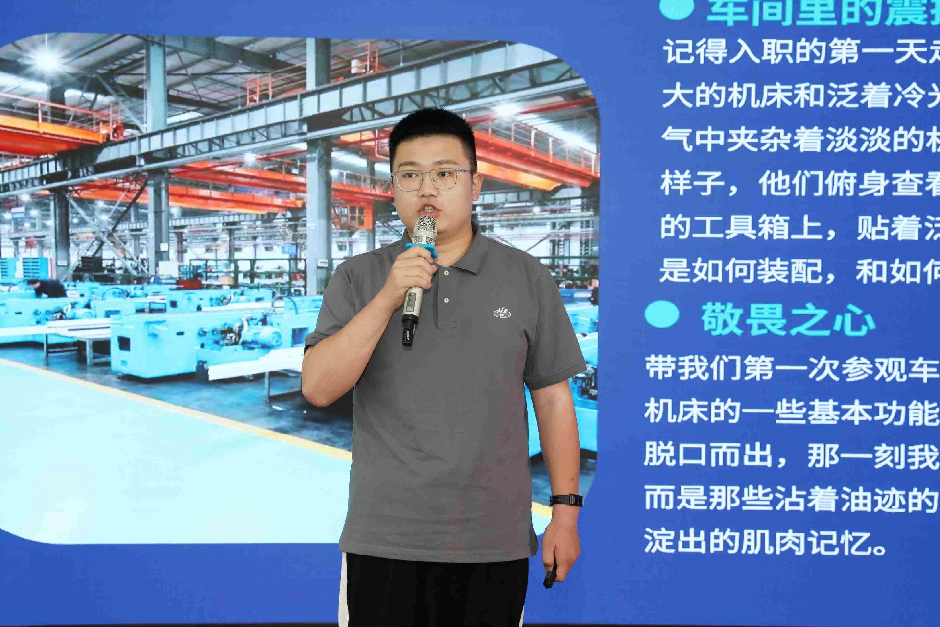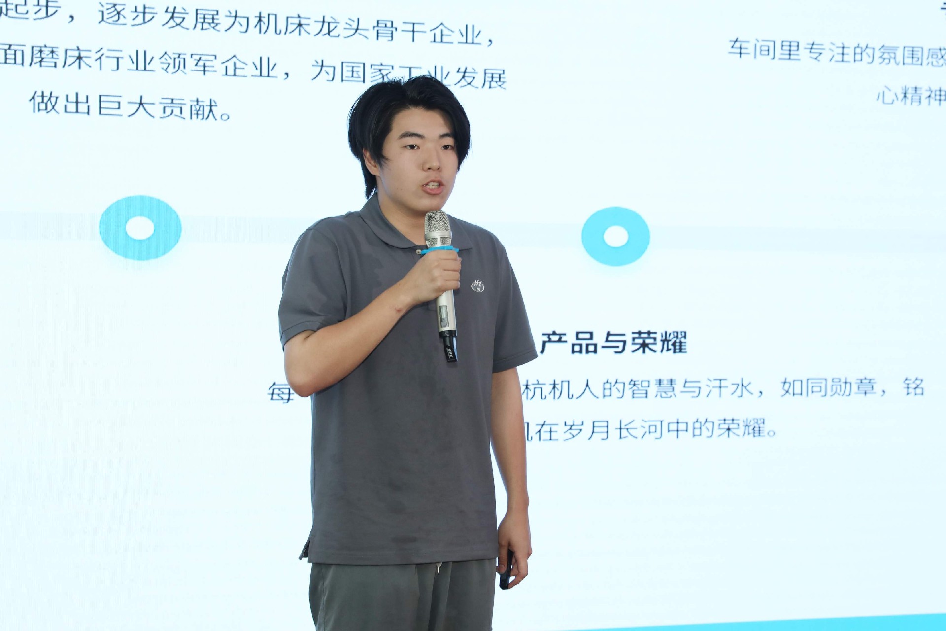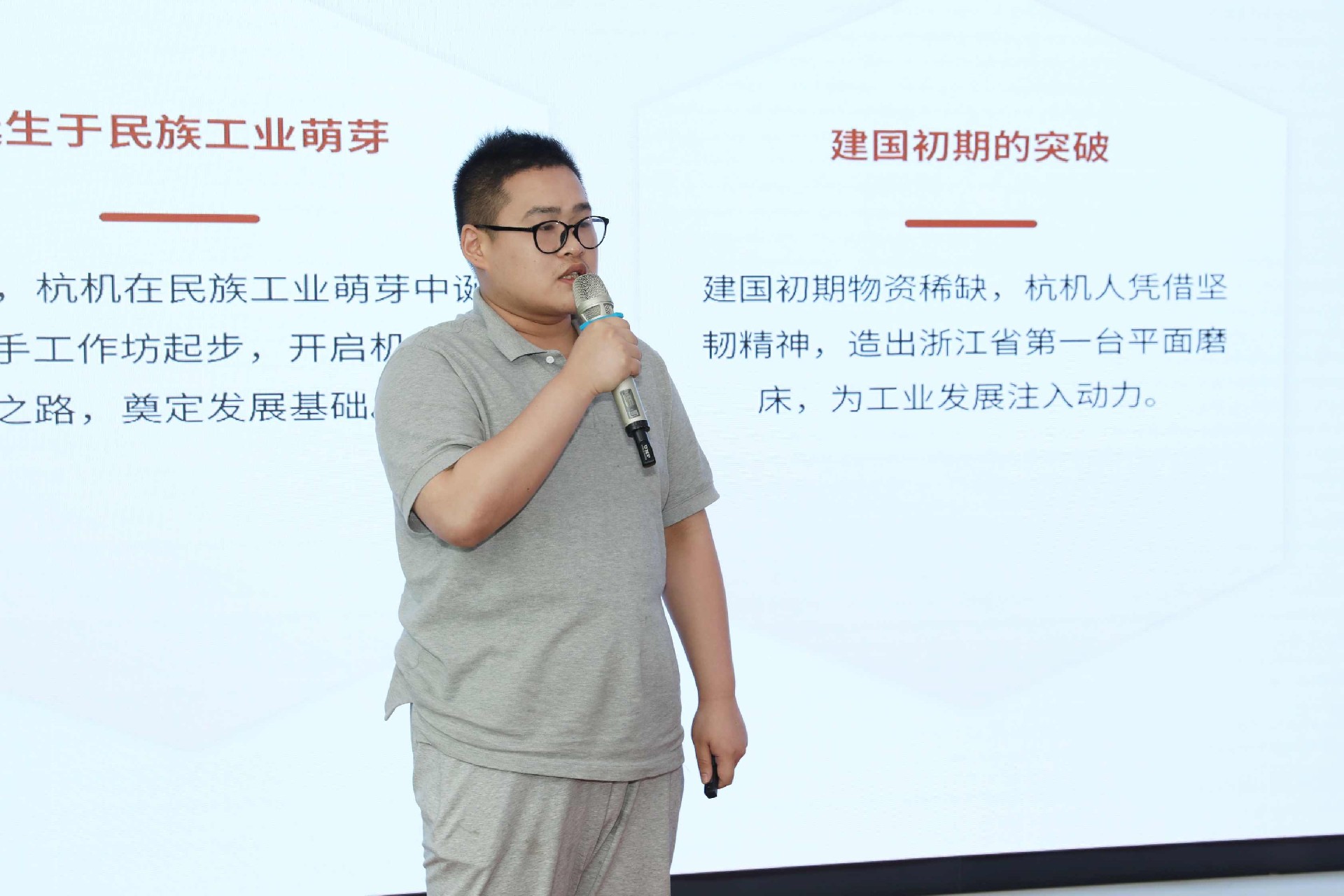 決賽現(xiàn)場,16名來自不同崗位的參賽選手依次登臺(tái)。他們中既有扎根車間三十載的老技工,也有青年研發(fā)工程師,更有新入職就感受到滿滿杭機(jī)力量的新員工。演講內(nèi)容緊扣“匠心傳承”“智造突圍”“黨員先鋒”等關(guān)鍵詞,配合多媒體視聽呈現(xiàn),引發(fā)陣陣掌聲。